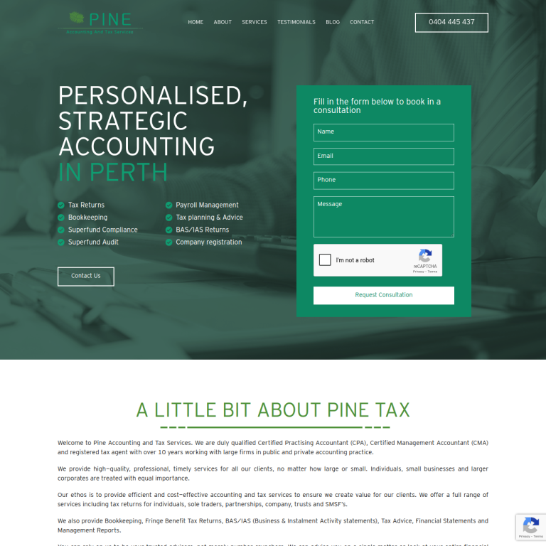 Pine Tax Accounting Perth is a boutique, West Perth–based accounting firm specialising in taxation, bookkeeping, company services, and superannuation compliance for individuals, sole traders, partnerships, trusts, companies and SMSFs. With more than 10 years of experience across public and private practice, Pine Tax provides accurate, reliable and competitively priced services with fast turnaround times. The […] continue reading