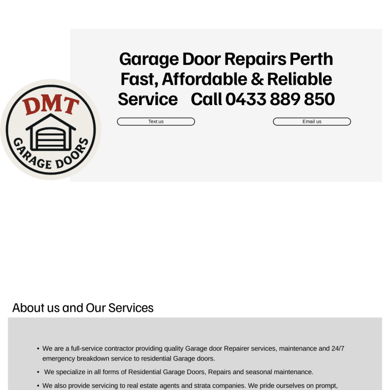 DMT Garage Doors is a Perth-based business specialising in residential garage door repair, maintenance and emergency‐breakdown services. With over 15 years’ experience, they provide 24/7 support for things like motor upgrades, spring replacement, remote control issues, and seasonal maintenance. Their service extends to real estate agents & strata companies, ensuring doors function safely and reliably. […] continue reading