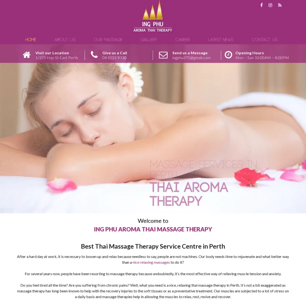 Ing Phu Thai Massage is a trusted massage therapy clinic in Perth, Western Australia, dedicated to providing authentic Thai massage and professional wellness treatments tailored to each client’s needs. The business has built a strong reputation for offering high-quality services that combine traditional healing techniques with modern relaxation practices. With a focus on promoting both physical and mental wellbeing, Ing Phu Thai Massage has become a popular choice for locals and visitors seeking effective pain relief, stress reduction, and rejuvenation.