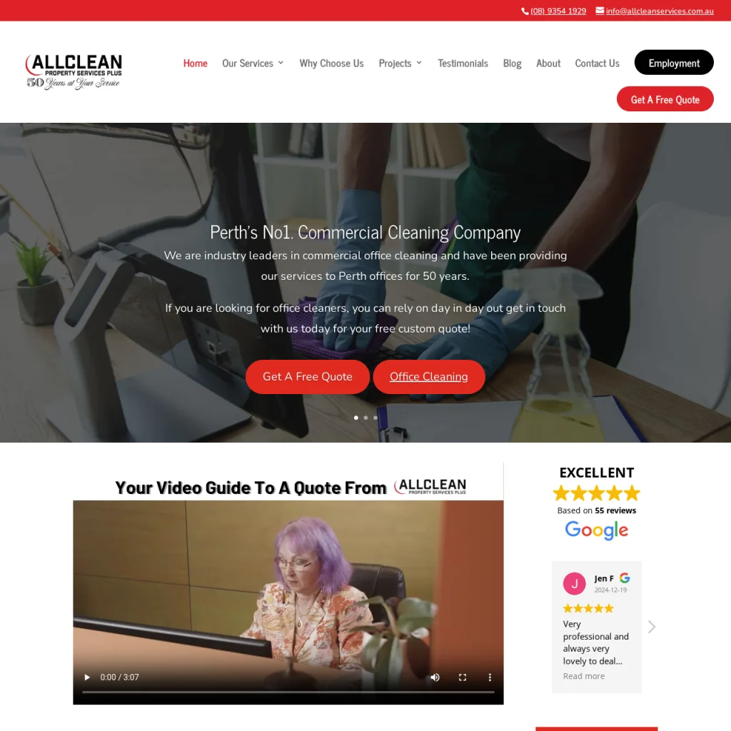 ALLCLEAN Property Services Plus is a family-owned and operated commercial cleaning company and a leader in the Perth market. Established in 1973, All Clean provides specialised cleaning solutions for offices, educational facilities, medical centres, and industrial and maritime sectors. The company’s business philosophy, rooted in family values, places a strong emphasis on consistent, reliable service and customer satisfaction. All Clean’s commitment to excellence is reinforced by a rigorous quality control system and has been recognised with multiple awards from the Cleaning Council of WA.