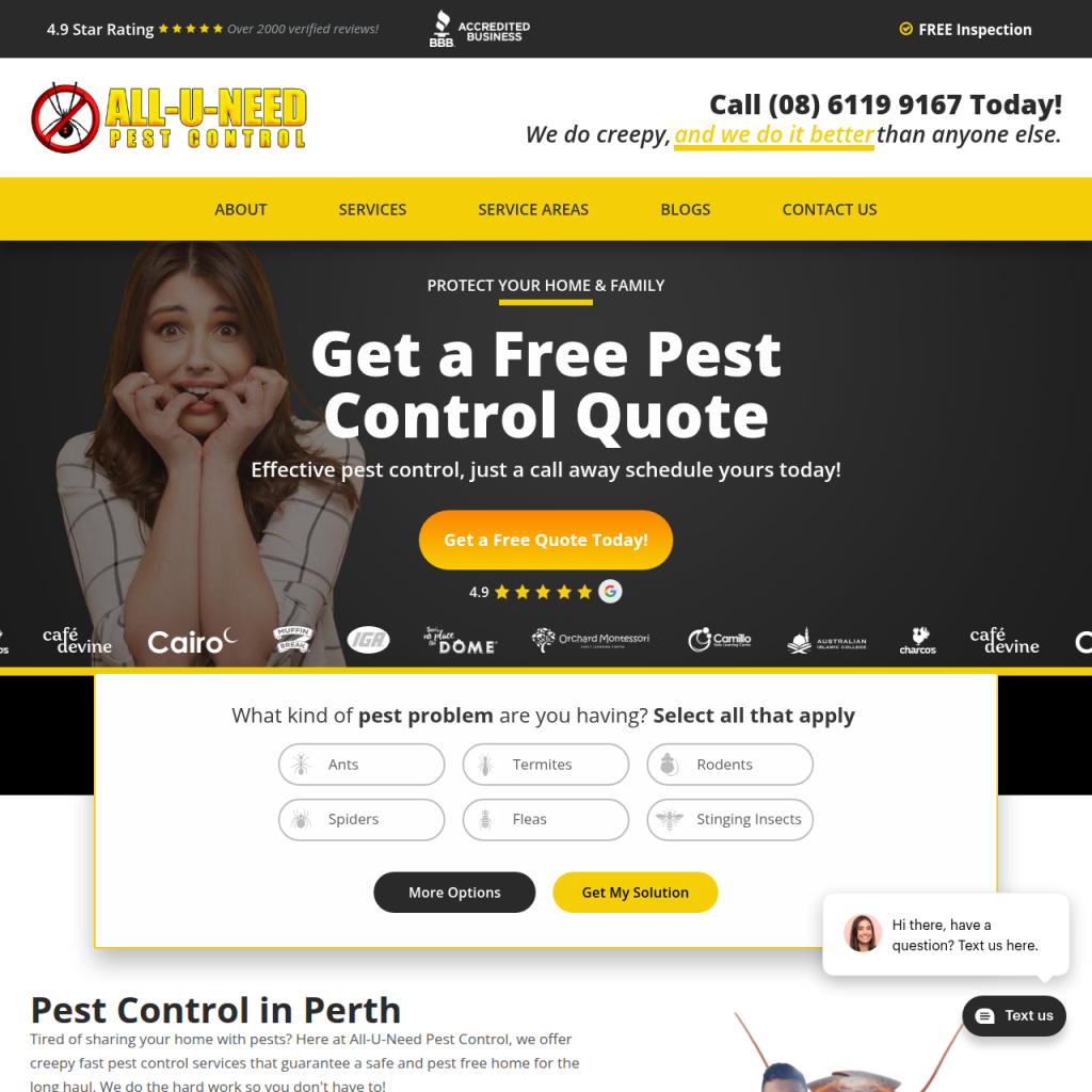 All-U-Need Pest Control’s website serves as a comprehensive resource for clients and prospective customers. The site includes detailed information on all services, practical tips for preventing infestations, and clear guidance on contacting the company for bookings or emergency services. The website reflects the company’s commitment to accessibility, professionalism, and client education, making it easy for clients to understand and engage with the full range of services.