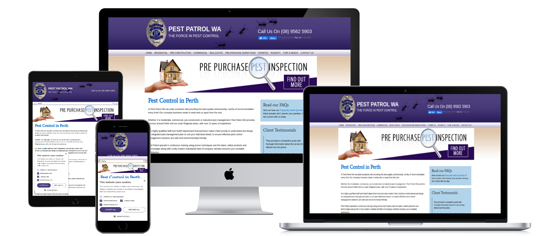 The Pest Patrol WA website provides comprehensive information about their service offerings, locations, and areas of expertise, making it easy for clients to understand their options and book services online. The site is designed to highlight key services, including termite, rodent, insect, and bird control, pre-purchase inspections, and commercial pest management solutions. By presenting detailed service descriptions alongside environmentally responsible practices and client-focused guarantees, the website positions Pest Patrol WA as a trusted, professional provider of pest control services in Western Australia.