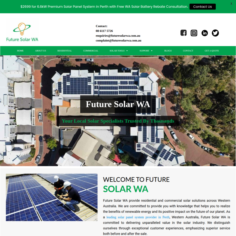 Future Solar WA is a trusted Perth-based solar energy provider specialising in residential and commercial installations across Western Australia. The company supplies high-quality Tier 1 solar panels, inverters and battery systems, with friendly local support and a comprehensive 5-year whole-system warranty for long-term peace of mind. Future Solar WA manages system design, approvals, installation and […] continue reading