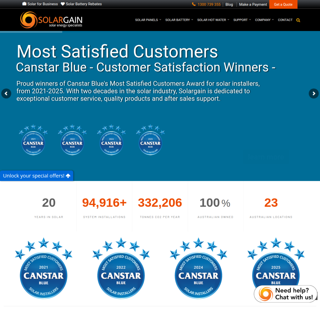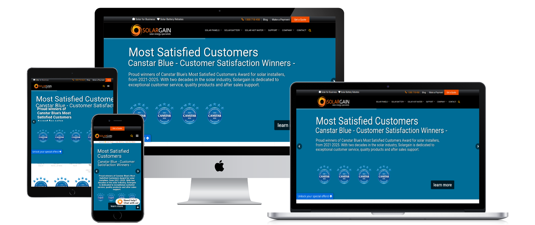 Solargain’s website provides detailed information about solar product types, common installation questions, government rebates, energy-saving tips and brand comparisons. This educational content is designed to help customers make informed decisions and understand the financial and environmental benefits of renewable energy. The website also includes testimonials, blog articles and promotions, supporting customers throughout their research and installation journey.